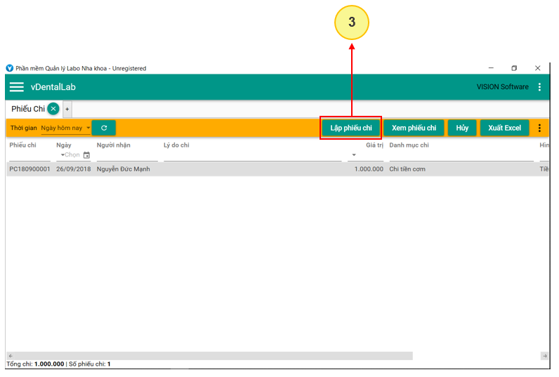 3: Chọn Lập phiếu chi