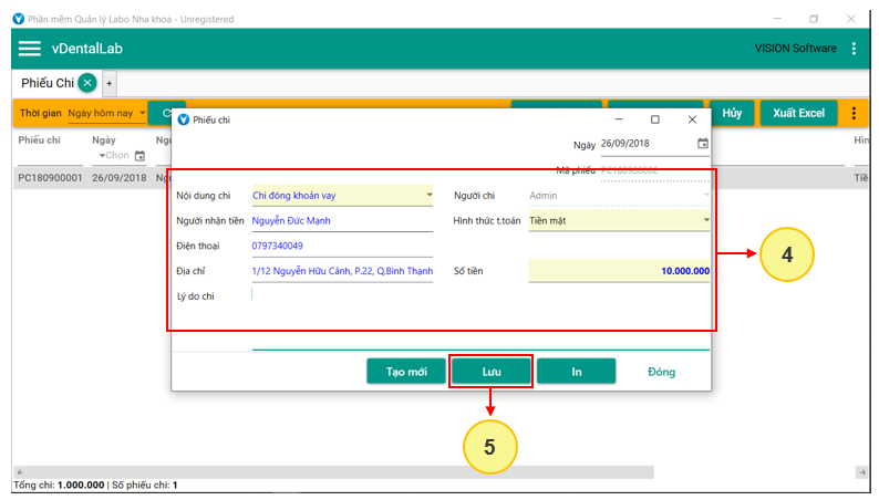 4: Nhập thông tin phiếu chi