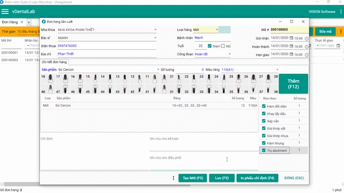 - – Trường hợp đơn hàng sản xuất không kịp giờ hẹn với bác sĩ, phần mềm sẽ gửi tin nhắn hẹn lại bác sĩ;